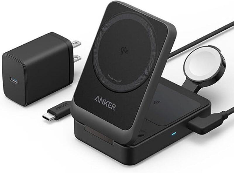 Anker MagGo Wireless Charging Stationは、iPhone・AirPods・Apple Watchを1つのスタンドでまとめて高速ワイヤレス充電できる便利なオールインワン充電ステーション。